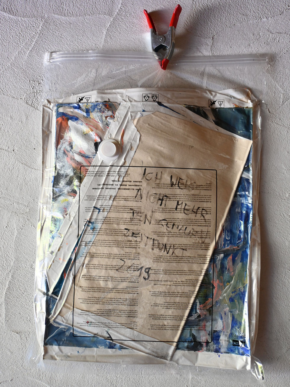 Eisenregal, Acryl, Öl auf Leinwand/ Baumwollgewebe, Vakuumbeutel (PE, PET)